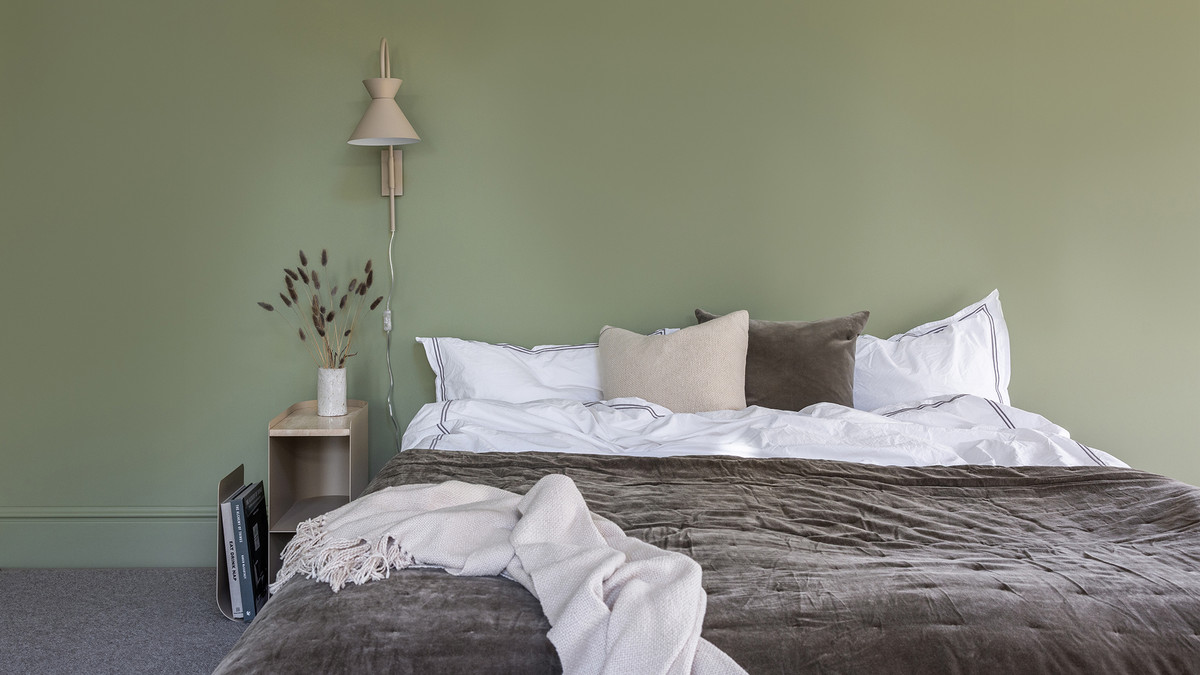Jeg synes man skal velge de fargene man selv ønsker. Likevel er det visse farger som passer bedre i enkelte rom enn andre. I soverom skal man helst velge en nøytral og rolig farge, derfor har jeg fremhevet grønn og beige som flotte valg fra årets trendfarger til soverommet for ro og god søvnkvalitet. -